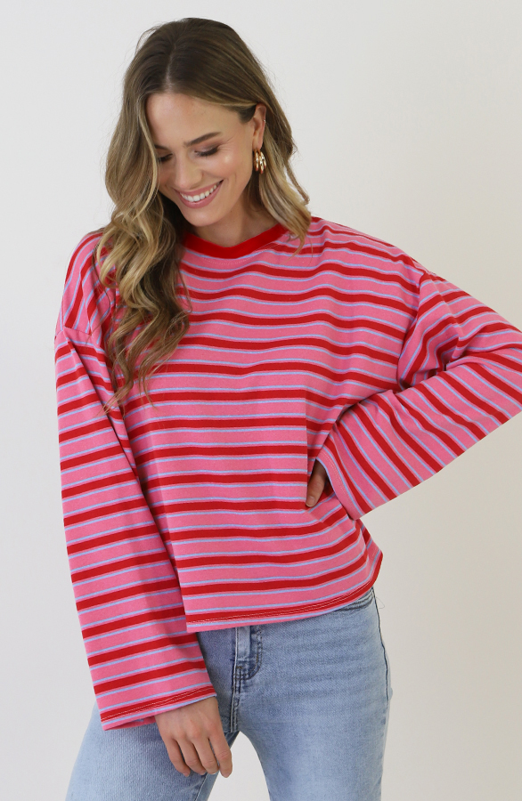Deze oversized gestreepte top is een echte everyday essential. Gemaakt van zacht katoen voor optimaal draagcomfort en een luchtige fit. De neutrale strepen geven de top een rustige, tijdloze uitstraling die moeiteloos te combineren is.Sizes: ONE SIZE, suitable for ladies with sizes S(36), M(38), L(40) Fit: valt als normaalModel: 178 cm and wears size One SizeDetails: ronde hals, lange mouwen and gestreept patroon Materials: 5% Elastaan, 95% KatoenWashing instructions: 30 graden wasmachine, wij adviseren om dit item te wassen in een waszak.For best results: niet in de droger, geen wasverzachter