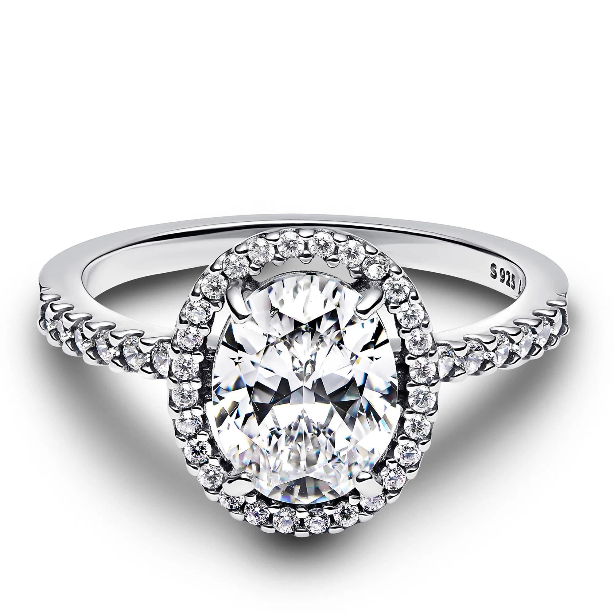 Pandora Ringen – Ovaler Funkelnder Strahlenkranz Statement-Ring in silver