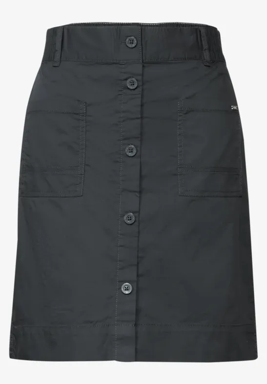 Met zijn lichte, zomerse stof is deze knielange rok voor dames van CECIL een echte favoriet voor warme dagen. De knoopsluiting en opgestikte zakken zorgen voor modieuze accenten, terwijl de Stretch tailleband zorgt voor draagcomfort. De katoenmix met stretch maakt deze rok bijzonder comfortabel.