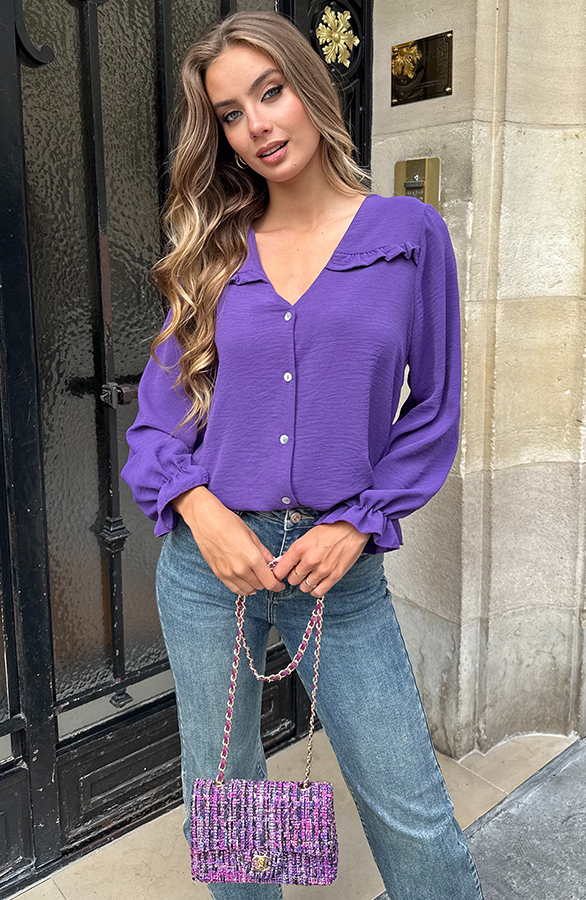 Pofmouwen Blouse Met Ruffle Demi Dark Purple