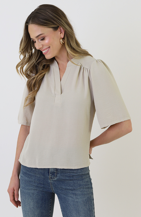 Deze modieuze top combineert een elegante pasvorm met gedetailleerde mouwen en een subtiel detail bij de schouders, wat zorgt voor een frisse en zelfverzekerde uitstraling. Perfect om zowel casual als chic te stylen.Sizes: S/M and L/XL – Size s/m is suitable for ladies with size S(36) and M(38) – Size l/xl is suitable for ladies with size L(40) and XL(42) Fit: valt als normaalModel: 178 cm and wears size S/MDetails: v-hals, korte mouwen and schouderdetail Material: 100% PolyesterWashing instructions: 30 graden wasmachineFor best results: niet in de droger, geen wasverzachter