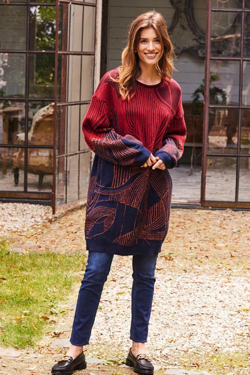 Unieke Stijl in de Pullover Amara Line Art Jacquard De Pullover Amara Line art jacquard is een fashion statement met een opvallend lijnenspel in een prachtige print. Deze stijlvolle pullover in blauw heeft een recht model en lange mouwen, perfect om je comfortabel te houden op koude dagen. De ronde hals en de geribde boorden zorgen voor een tijdloze look die nooit uit de mode raakt. Gemaakt van Hoogwaardige Stof Het hoogwaardige materiaal van de Pullover Amara Line art jacquard biedt niet alleen stijl maar ook comfort. De gebreide stof zorgt voor warmte en gezelligheid, ideaal voor het seizoen van knusse momenten. Het materiaal is ademend en zacht, waardoor je je de hele dag comfortabel voelt. Stijladvies Geef je outfit een speelse twist met deze pullover. Combineer de Pullover Amara Line art jacquard eenvoudig met een lekkere broek of jeans voor een casual look of draag hem over een leuke blouse voor een verfijnde stijl. Laat jouw gevoel voor mode spreken met deze veelzijdige pullover. Wasvoorschrift Wassen: Om de kwaliteit van je Pullover Amara Line art jacquard te behouden, raad ik aan om te wassen op 30 graden. Zo blijft de kleur fris en de stof heerlijk zacht. Droogvoorschrift: Het is beter om je pullover niet in de droger te stoppen. Hang het kledingstuk op voor een natuurlijke droging. Strijkvoorschrift: Mocht het nodig zijn, strijk dan op lage temperatuur om het materiaal niet te beschadigen. Met deze tips blijf je nog langer genieten van jouw favoriete pullover, klaar voor elke mode-uitdaging!