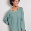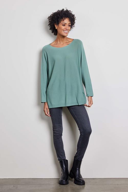 Lichtgewicht pullover Fresh in een zachte viscose mix. Deze fijne trui draagt heerlijk comfortabel en licht, het hele jaar door. Bovendien is deze ook goed te dragen onder een blazer of trendy mouwloos vest. Hij heeft lange mouwen en een ronde hals. Hier afgebeeld in de kleur donker saliegroen.