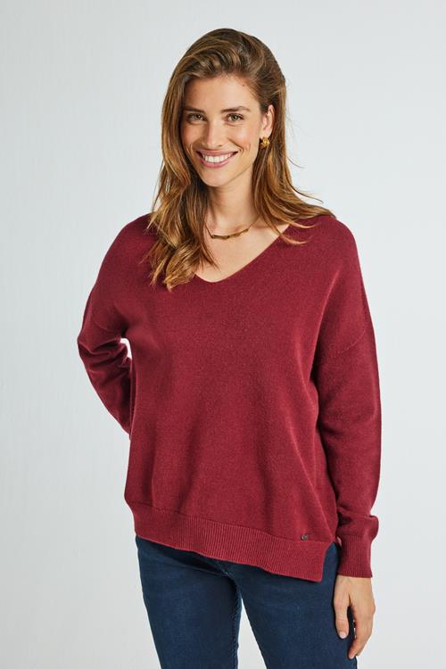 Luxe Comfort met de Pullover Piano Pomme red Ervaar het ultieme comfort met de Pullover Piano Pomme red. Deze stijlvolle rode pullover is perfect voor de koudere maanden wanneer je je wilt omhullen in warmte en gezelligheid. Het model heeft een rechte pasvorm en lange mouwen, waardoor het een veelzijdige keuze is voor elke gelegenheid. De V-hals en de fijn gebreide structuur geven een moderne touch, terwijl de geribde boorden en subtiele split zorgen voor een speelse afwerking. Laat je verleiden door de veelzijdigheid en comfortabele elegantie van deze pullover. Gemaakt van hoogwaardige stof Deze pullover is een mix van hoogwaardige materialen: 51% viscose, 25% polyester, en 24% polyamide. Deze combinatie zorgt voor een zachte, ademende en duurzame stof die je warm houdt op koude dagen. Viscose biedt een zijdeachtige zachtheid, polyester voegt duurzaamheid en vormvastheid toe, en polyamide maakt het geheel extra sterk en elastisch. Dit maakt de pullover niet alleen stijlvol, maar ook heel functioneel. Stijladvies Creëer moeiteloos een stijlvolle look door de Pullover Piano Pomme red te combineren met een lekkere broek of jeans of met een leuke blouse. De rijke rode kleur van de pullover laat zich makkelijk combineren met verschillende tinten en stijlen, van casual tot chique. Wasvoorschrift Wassen: Was de pullover op 30 graden om de kleuren levendig te houden en slijtage te voorkomen. Droogvoorschrift: Vermijd het gebruik van de droger; laat het liggend drogen om de vorm te behouden. Strijkvoorschrift: Strijk op lage temperatuur om de zachte textuur en pasvorm te behouden. Volg deze wasvoorschriften voor langdurig plezier van jouw Pullover Piano Pomme red. Deze stijlvolle en comfortabele pullover wordt ongetwijfeld een favoriet in je garderobe.