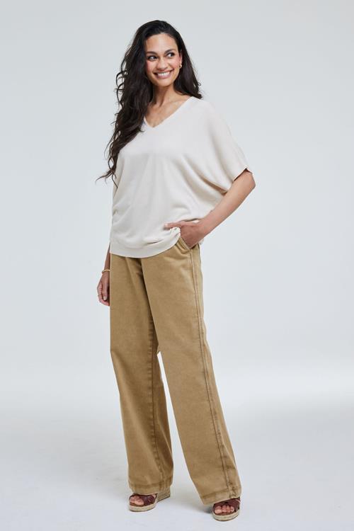 Elegante Stijl: Pullover Stella Ecru De Pullover Stella Ecru is de ideale keuze voor een frisse en luchtige stijl. Deze witte pullover, ontworpen met een charmante V-hals en korte mouwen, biedt alles wat je zoekt in een comfortabele en modieuze top. Of je nu naar kantoor gaat of een relaxte wandeling maakt, deze pullover zorgt ervoor dat je er moeiteloos stijlvol uitziet. Gemaakt van hoogwaardige stof De Pullover Stella Ecru is vervaardigd uit een blend van 55% viscose en 45% acryl. Deze samenstelling staat garant voor een lichte en ademende stof die het hele seizoen heerlijk aanvoelt. Viscose zorgt voor een zijdeachtige textuur, terwijl acryl bijdraagt aan de duurzaamheid en vormbehoud van het kledingstuk. Zo geniet je telkens van comfort zonder compromissen te sluiten op stijl. Stijladvies Haal het beste uit jouw Pullover Stella Ecru door het te combineren met een lekkere broek of jeans voor een casual look, of voeg een leuke blouse toe voor een speelse twist. Deze veelzijdige pullover past perfect bij al jouw favoriete kledingstukken, waardoor je eindeloos kunt variëren met je outfit. Wasvoorschrift Wasvoorschrift: Machinewas op 30 graden in een delicaat programma. Gebruik het liefst een fijnwasmiddel om de stof te beschermen. Droogvoorschrift: Liggend drogen om vormverlies te voorkomen. Vermijd direct zonlicht tijdens het drogen. Strijkvoorschrift: Strijken op lage temperatuur. Houd bij voorkeur een doek tussen de strijkbout en de stof om beschadiging te voorkomen. Geniet van het comfort en de veelzijdigheid van de Pullover Stella Ecru en laat je inspireren door de eindeloze stylingmogelijkheden!