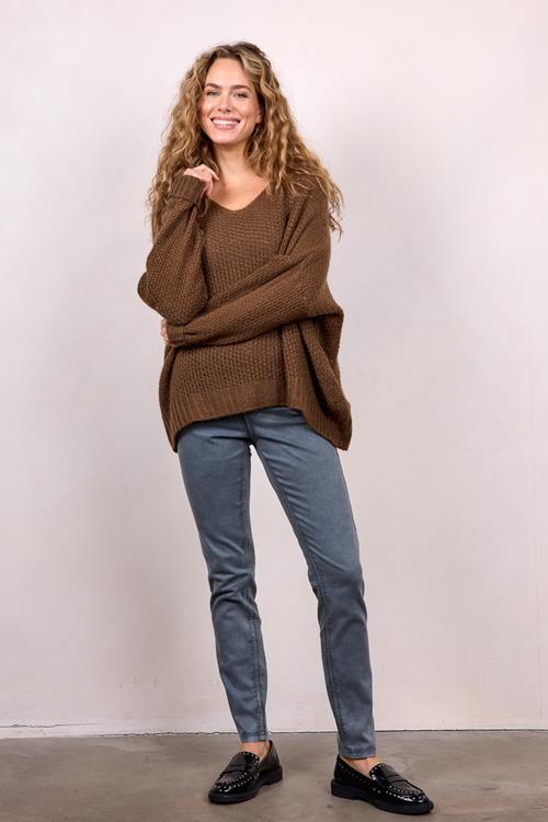 Pullover Torino Chocolate Brown: Jouw Nieuwe Favoriet Verwarm je in stijl met de Pullover Torino Chocolate Brown. Deze prachtige pullover, in een verfijnde beige-bruine tint, biedt het comfort dat je zoekt in de koudere maanden. De rechte pasvorm en de lange mouwen maken dit model ideaal voor iedere dag. De V-hals voegt een subtiel elegante touch toe, perfect voor een gezellige en stijlvolle look. Gemaakt van Hoogwaardige Stof De Pullover Torino Chocolate Brown is vervaardigd van een zorgvuldig gekozen mix van materialen: 50% Acryl, 30% Polyamide, 10% Mohair, en 10% Wol. Deze combinatie zorgt voor een zachte en warme ervaring, zonder aan duurzaamheid in te boeten. De acryl en polyamide maken de pullover licht en vormvast, terwijl mohair en wol extra warmte en comfort bieden. Ideaal voor koude dagen waar stijl en comfort centraal staan. Stijladvies Deze veelzijdige pullover is gemakkelijk te combineren. Voor een casual maar chique look, draag je hem met een lekkere broek of een basic blouse. Voeg je favoriete accessoires toe en je bent klaar om in stijl te verschijnen, of je nu thuis blijft of de deur uitgaat. Wasvoorschrift Wasvoorschrift: Was de pullover op een handwasprogramma of kies voor koud wassen in de machine. Gebruik altijd een mild wasmiddel voor breisels. Droogvoorschrift: Liggend laten drogen om de vorm te behouden. Vermijd direct zonlicht en hittebronnen. Strijkvoorschrift: Mocht het nodig zijn, strijk dan op een lage temperatuur en bij voorkeur met een doek ertussen om de vezels te beschermen. Met de Pullover Torino Chocolate Brown voeg je eenvoudig een veelzijdig en tijdloos stuk toe aan je garderobe. Kies voor stijl, comfort en kwaliteit in één kledingstuk.
