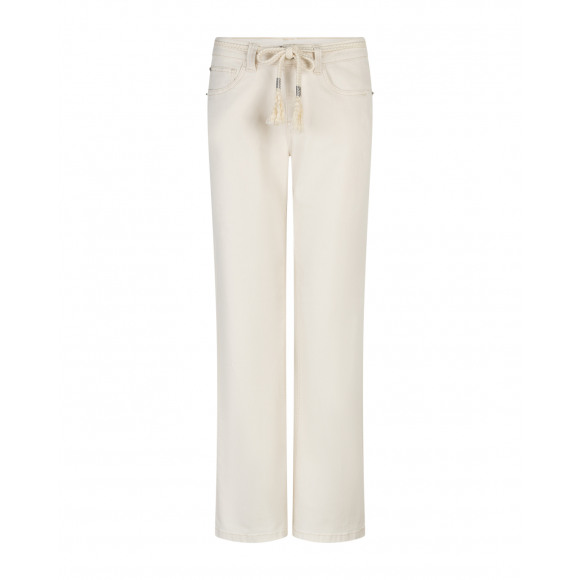 Broek van het merk Red Button in een zachte ecru tint. Deze comfortabele broek heeft een rechte, wijde pijp en een sportieve uitstraling dankzij het koord in de taille met subtiele franjes. De lichte kleur en het minimalistische ontwerp maken deze broek een veelzijdige basis voor het voorjaar en de zomer.