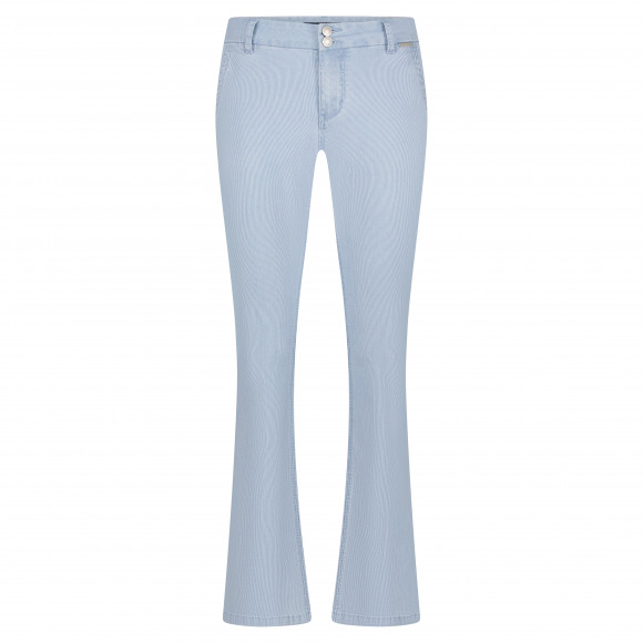 Flared broek van chambray stof van het merk red Button. De broek heeft een hoge taille en steekzakken. De Bibette fancy chambray heeft een aangesloten pasvorm op de bovenbeen en heup en is uitlopend vanuit de knie in de perfecte flare.