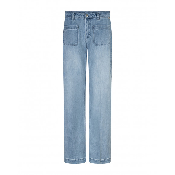Jeans van het merk Red Button in een lichtblauwe wassing. Deze jeans heeft een moderne, rechte pasvorm en is uitgevoerd met opvallende opgestikte zakken aan de voorkant die zorgen voor een stoere en eigentijdse uitstraling. De zachte denim met lichte wassing geeft de broek een frisse, casual look die perfect past bij het voorjaar en de zomer.
