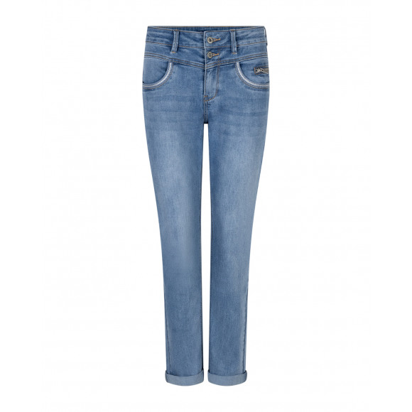 * Details: lichtblauwe stonewash, subtiele glinsterbies bij de voorzakken, comfortabele stretch