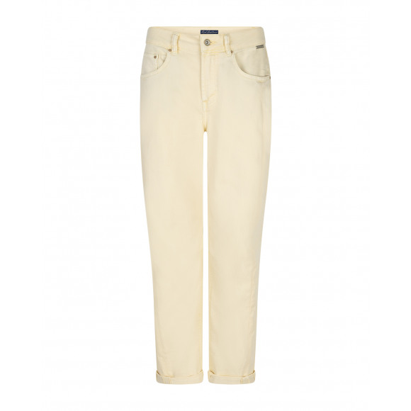 Broek van merk Red Button. Deze zomerse broek in een zachte butter yellow tint geeft jouw outfit direct een frisse en vrouwelijke uitstraling. De rechte pijpen en iets kortere lengte zorgen voor een moderne, casual look, terwijl de comfortabele stretchkwaliteit heerlijk draagt. Perfect voor zonnige dagen waarop je er stijlvol én ontspannen uit wilt zien.