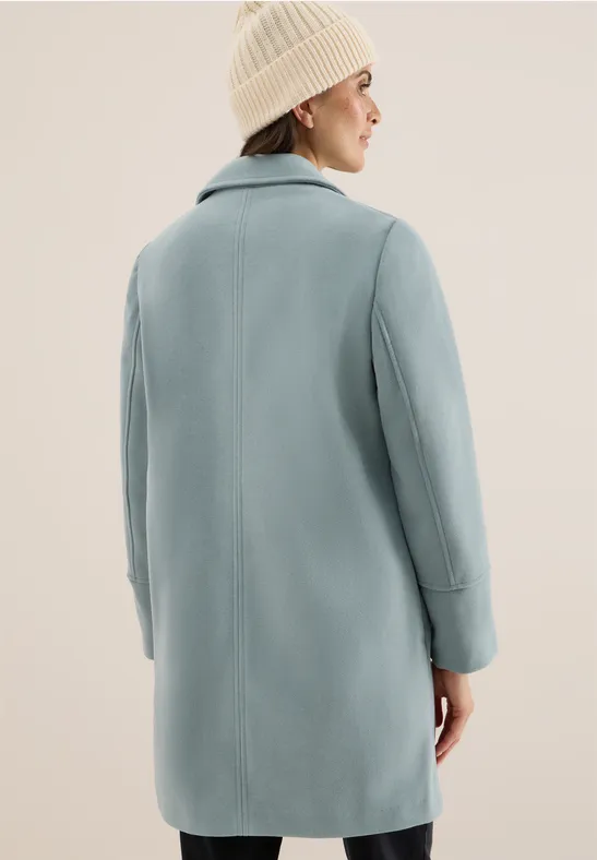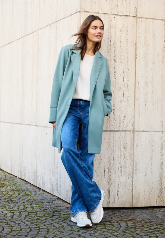 De CECIL-jas voor dames heeft een moderne wollen look en een stijlvolle reverskraag. Twee knopen, steekzakken en fijne sierstiksels benadrukken het klassieke ontwerp met ton-sur-ton details. De comfortabele pasvorm en hoogwaardige look maken het de ideale metgezel voor je herfst- en wintergarderobe.
