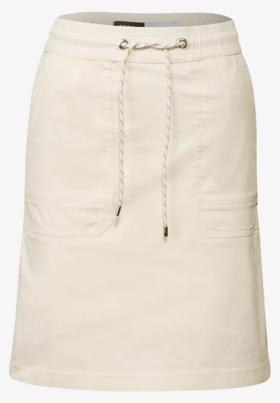 Een zomerse favoriet met een fijn streeppatroon: deze knielange rok van CECIL voor dames heeft een elastische tailleband, een tunnelkoord en steekzakken. De katoenmix met stretch biedt veel comfort.