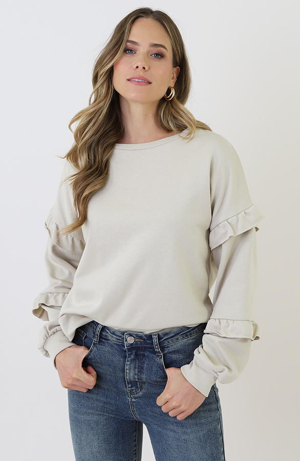 Ruffle Puff Sleeve Sweater Beige