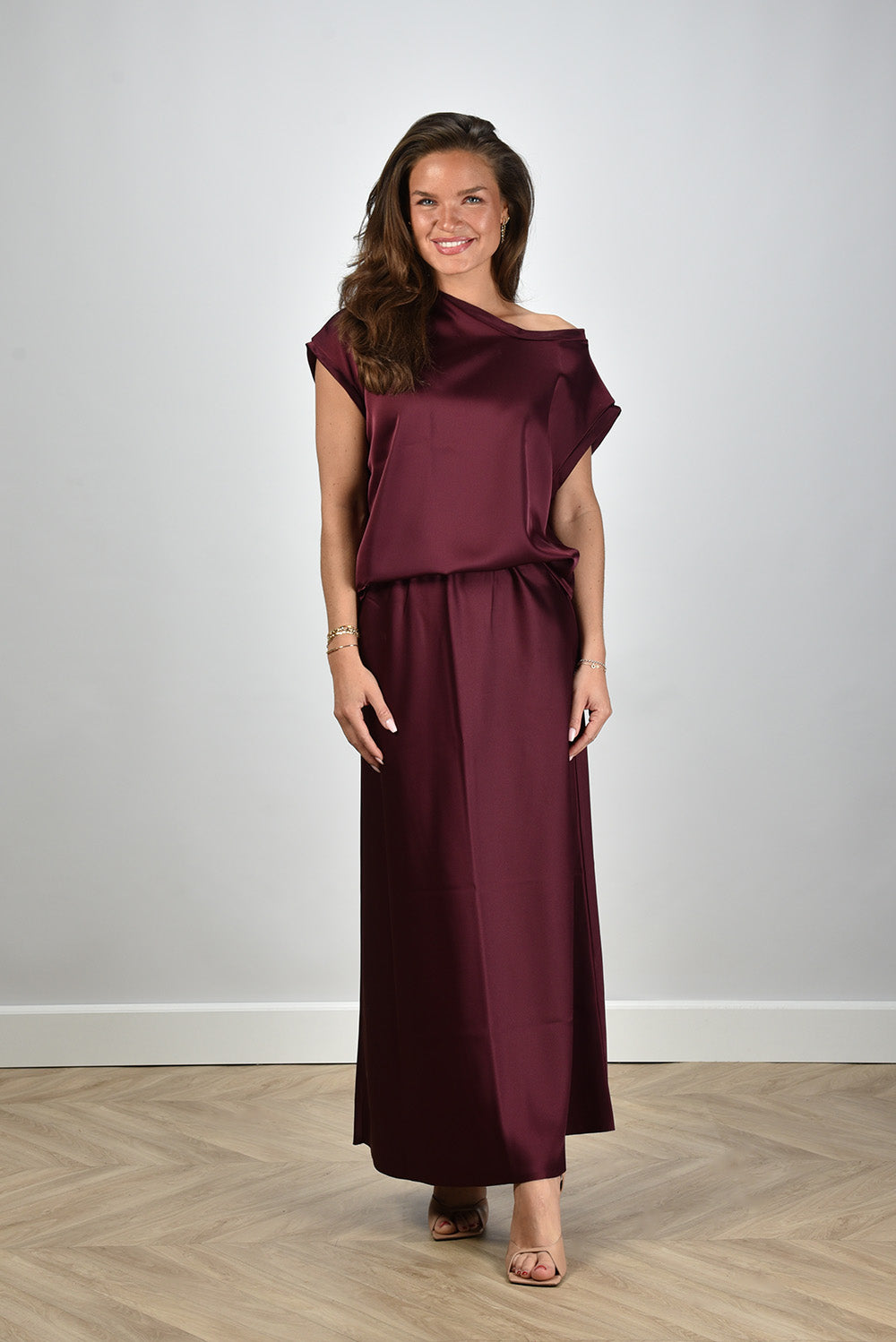 De rok Scarlett van Sea Me Happy is een lange satijnen rok in een diepe cabernet tint. De stof heeft subtiele glans en valt recht langs het lichaam voor een rustige, vloeiende lijn. De normale pasvorm zorgt dat hij mooi aansluit zonder strak te zitten. De rok is gemaakt van 100% polyester, waardoor hij soepel valt en zijn vorm goed behoudt. De warme kleur combineert mooi met zowel lichte als donkere tinten. Draag hem met de Morobe sandalen Mimi 36 nude voor een zachte, zomerse combinatie. Sea Me Happy ontwerpt met aandacht voor vorm en eenvoud en deze rok sluit daar mooi bij aan, met een duidelijke snit en een eigen karakter.