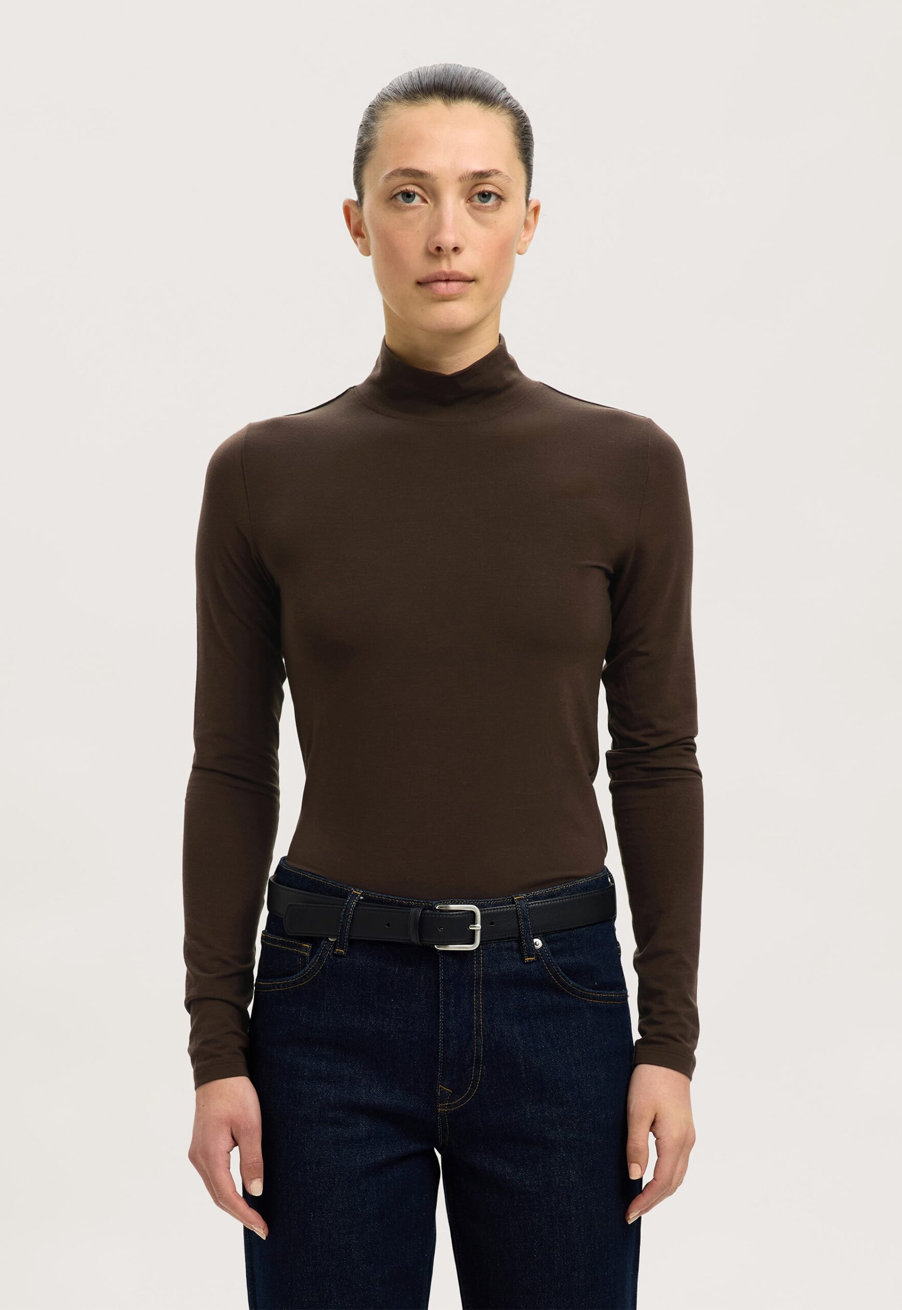 Dit is de Manja Kol van het merk Selected Femme. De top is gemaakt van een comfortabele, rekbare stof en heeft een aangesloten pasvorm. Het model is uitgevoerd met een hoge hals en lange mouwen, wat zorgt voor een veelzijdige basic die gemakkelijk te combineren is.