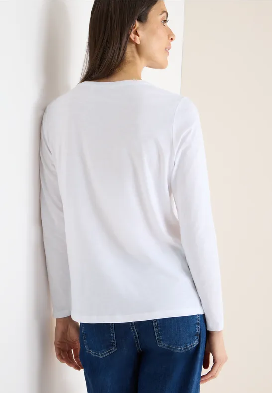 Dit damesoverhemd met lange mouwen van CECIL heeft een gedeelde hals en een decoratieve knoopsluiting. Het zuivere katoen zorgt voor een comfortabel gevoel en maakt het Shirt tot een gezellige alledaagse metgezel. Een vrouwelijke look die op verschillende manieren gecombineerd kan worden.