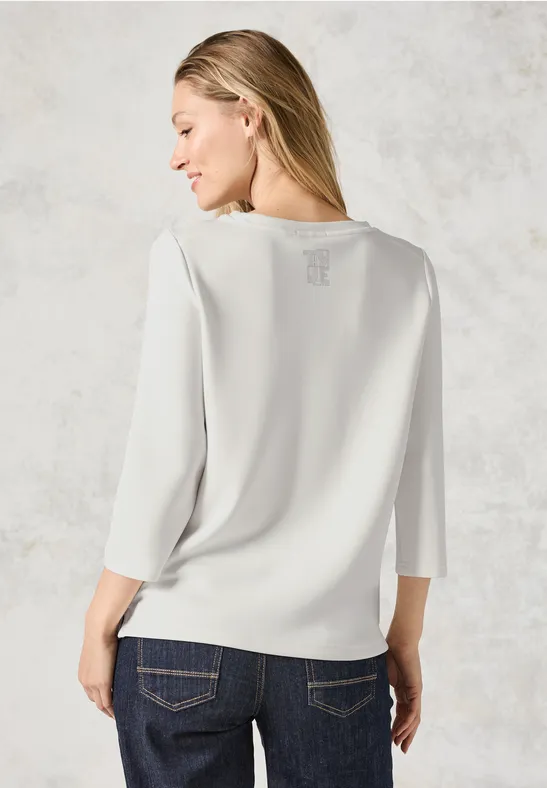 Het CECIL printshirt voor dames is zacht en comfortabel. Het damesshirt heeft een grafische print, een boothals en 3/4-mouwen. De materiaalmix met stretch zorgt voor een comfortabele pasvorm.