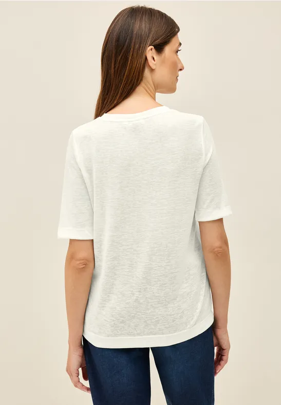 Dit Shirt van CECIL voor dames heeft een subtiele siliconenprint en zachte jerseystof. De ronde hals en korte mouwen maken het een ongecompliceerde favoriet. Perfect om te mixen en matchen.
