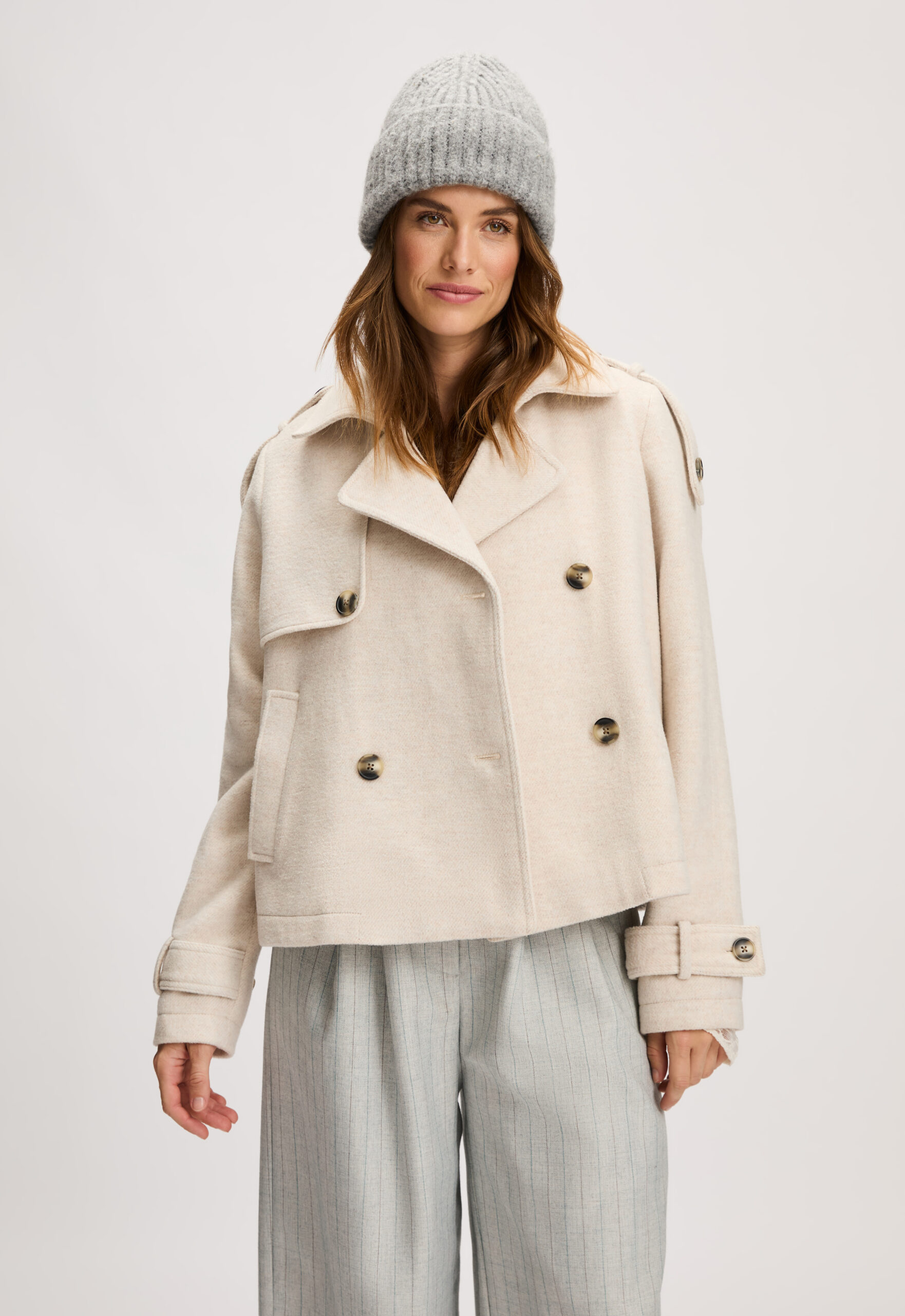 Dit is de Raven Jas van het merk Silvercreek. Deze korte, losvallende trench heeft een klassieke uitstraling en een moderne pasvorm. De warme wolmix houd je lekker comfortabel en warm op frisse dagen. Met de dubbele knoopsluiting en wijde paspelzakken is deze jas niet alleen praktisch, maar ook stijlvol. De verstelbare mouwriemen met knopen zorgen ervoor dat je de pasvorm makkelijk naar wens kunt aanpassen.