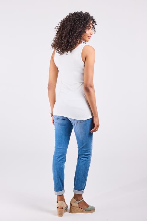 Singlet Ruby Snow White: Perfecte Basics voor Jouw Garderobe Met de Singlet Ruby Snow White ben je altijd klaar voor elk seizoen. Dit veelzijdige kledingstuk, met zijn frisse witte kleur en het tijdloze model, is een must-have in iedere kledingkast. De mouwloze constructie en de ronde hals maken het singlet zowel comfortabel als stijlvol, perfect voor zowel warme als koelere dagen. De regular fit zorgt ervoor dat het singlet altijd prettig zit, ongeacht de gelegenheid. Gemaakt van Hoogwaardige Stof Het Singlet Ruby Snow White is vervaardigd van 95% viscose en 5% elasthan. Deze combinatie zorgt voor een zachte en soepele stof die heerlijk aanvoelt op de huid. Viscose biedt ademend vermogen, terwijl elasthan de stof elastisch maakt voor extra draagcomfort. Hierdoor blijft het singlet mooi in vorm, wat bijdraagt aan een langdurige kwaliteit en fit. Stijladvies Dit singlet is een veelzijdige basic die zich uitstekend laat combineren met verschillende stijlen. Draag het met een mooie jeans voor een casual look, of combineer het met een rok voor een iets formelere uitstraling. De zachte kleur en het eenvoudige ontwerp geven je eindeloze mogelijkheden om te mixen en matchen met andere items uit je garderobe. Wasvoorschrift Wassen: Het is aan te raden om het singlet op 30 graden te wassen om de kwaliteit en kleur te behouden. Droogvoorschrift: Vermijd de droger om onnodige slijtage te voorkomen. Laat het singlet bij voorkeur aan de lucht drogen. Strijkvoorschrift: Mocht je willen strijken, doe dit dan op een lage temperatuur om de stof en elasticiteit te beschermen. Het Singlet Ruby Snow White is de perfecte aanvulling op jouw kledingcollectie, met kwaliteit en stijl als leidraad.