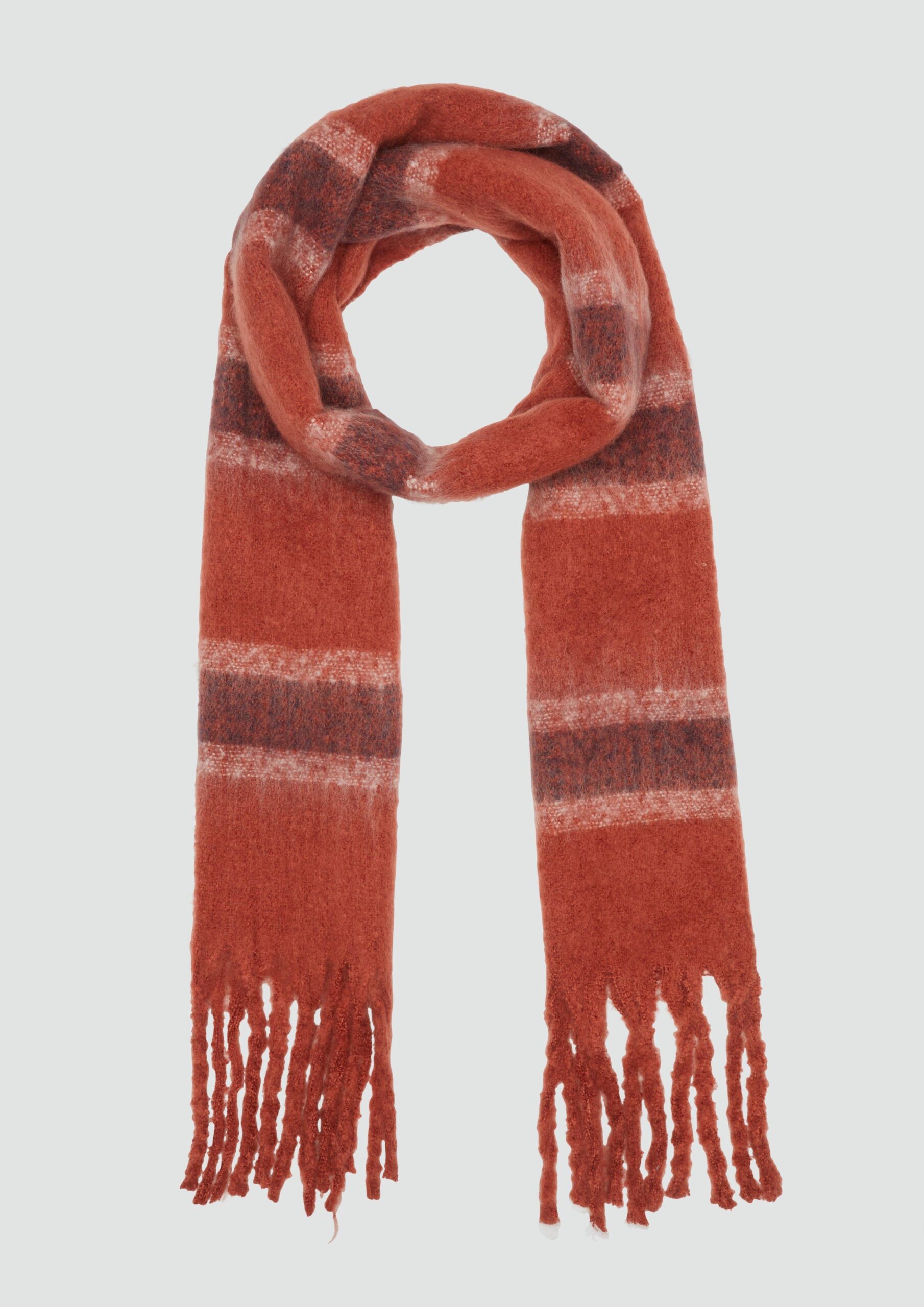 Je coole metgezel voor elke dag: de pluizige, gestreepte sjaal met franjes houdt je stijlvol warm op al je avonturen. Of het nu gaat om een casual wandeling door de stad of een uitstapje in de buitenlucht – deze zachte must-have geeft elke outfit iets extra’s.