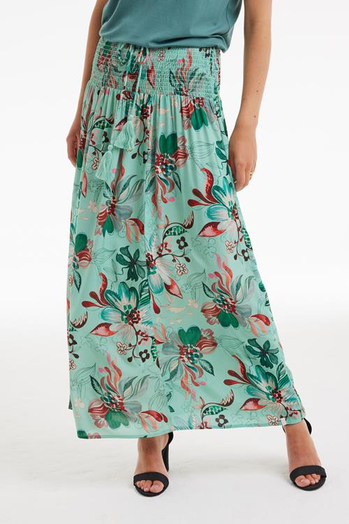 Verfijnde allure met de Skirt Magic Reflection print Laat je betoveren door de Skirt Magic Reflection print. Deze prachtige groene rok met print biedt niet alleen een eyecatching ontwerp, maar ook een comfortabele pasvorm dankzij de elastische tailleband met koord. De gesmockte tailleband zorgt voor een subtiel speelse uitstraling en maakt hem perfect voor een frisse, zomerse dag. Deze rok met zijn regular waist is een schitterende toevoeging voor elke garderobe. Gemaakt van hoogwaardige stof Deze rok is vervaardigd uit 100% rayon, een stof die bekendstaat om zijn lichte en luchtige eigenschappen. Rayon voelt heerlijk zacht aan op de huid en beweegt soepel met je mee, wat deze rok ideaal maakt voor warme dagen. Het ademende materiaal houdt je koel en comfortabel, terwijl het een elegante uitstraling behoudt. Stijladvies Combineer de Skirt Magic Reflection print met een simpel topje of blouse om de levendige print te laten stralen. Voeg een paar elegante sandalen of hakken toe om je look af te maken. Deze rok is veelzijdig genoeg om zowel casual als meer formeel te dragen, perfect voor een zonnige dag in de stad of een ontspannen avondje uit. Wasvoorschrift Wasvoorschrift: Wassen op 30 graden om de kwaliteit en kleur van je rok te behouden. Droogvoorschrift: Niet bleken en vermijd de droger om te voorkomen dat de stof krimpt of beschadigt. Laat de rok liever aan de lucht drogen voor de beste resultaten. Strijkvoorschrift: Strijk de rok op een lage temperatuur om de stof zacht en in perfecte staat te houden. Voeg deze stijlvolle en comfortabele rok toe aan je collectie en geniet van de eenvoud en elegantie die hij biedt.