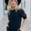 Oh-my! Deze top is echt fan-tas-tisch! De top is voorzien van korte mouwen, een ronde hals en kanten details. Deze top is eindeloos te combineren en is de perfecte basic.Sizes: ONE SIZE, suitable for ladies with sizes S(36), M(38), L(40) Fit: valt als normaalModel: 176 cm and wears size One SizeDetails: ronde hals, korte mouwen and kanten details Materials: 40% Viscose, 35% Polyamide, 15% Modal, 10% ElastaanWashing instructions: 30 graden wasmachineFor best results: niet in de droger, geen wasverzachter