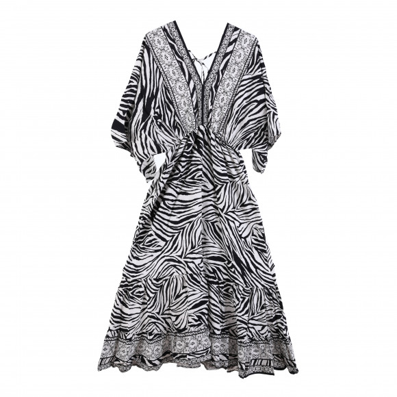 Met deze zomerjurk kan je heerlijk flaneren. Het is one size (1 maat) en geschikt van maat 36 t/m 42.