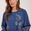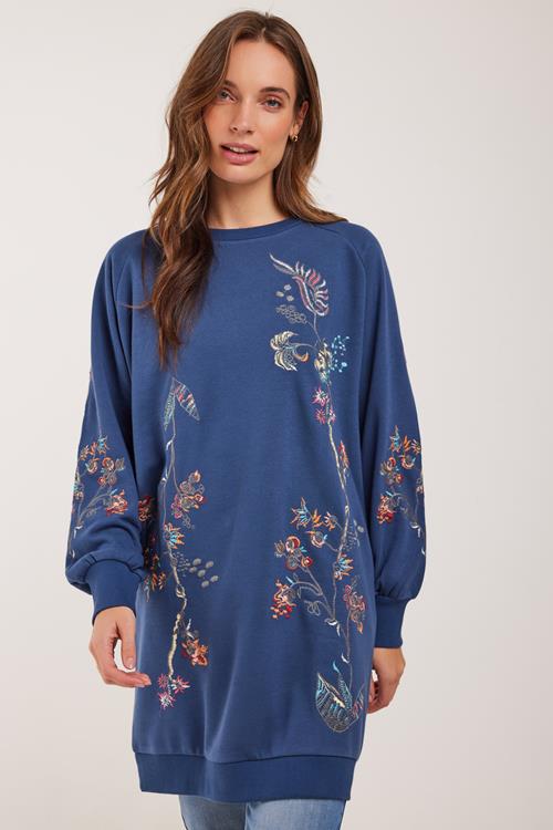 Sweat dress Kyra Festival embro: Tijdloze Elegantie De Sweat dress Kyra Festival embro is jouw nieuwe favoriete kledingstuk. Met een frisse en levendige blauwe kleur is deze lange mouw sweat dress gemaakt voor comfort en stijl. De losse pasvorm en ronde hals geven het de perfecte uitstraling voor zonnige dagen en koele avonden. De speelse borduursels voegen een unieke flair toe, waardoor het een bijzondere aanwinst is voor je garderobe. Gemaakt van hoogwaardige stof De combinatie van 60% katoen en 40% polyester maakt deze sweat dress zacht en ademend. Het gebruik van katoen zorgt voor een comfortabel gevoel op de huid, terwijl het polyester zorgt voor duurzaamheid en vormbehoud. Ideaal voor dagelijks gebruik, zonder concessies te doen aan stijl of comfort. Stijladvies Met de Sweat dress Kyra Festival embro kun je eindeloze stijlen creëren. Combineer het met een lekkere broek of je favoriete jeans voor een casual look. De lange mouwen en elegante ronde hals maken het veelzijdig genoeg voor zowel een ontspannen dagje uit als een avondje uit. Wasvoorschrift Was instructie: Was deze sweat dress op 30 graden om de stof en de prachtige borduursels te behouden. Vermijd het gebruik van bleekmiddel en chemische reinigingsmiddelen. Droogvoorschrift: Niet in de droger stoppen; laat de kleding op natuurlijke wijze drogen om de vorm en kwaliteit te behouden. Strijkvoorschrift: Strijken op lage temperatuur om de borduursels en de stof niet te beschadigen. Met deze instructies blijft jouw Sweat dress Kyra Festival embro er stralend uitzien, was na was.