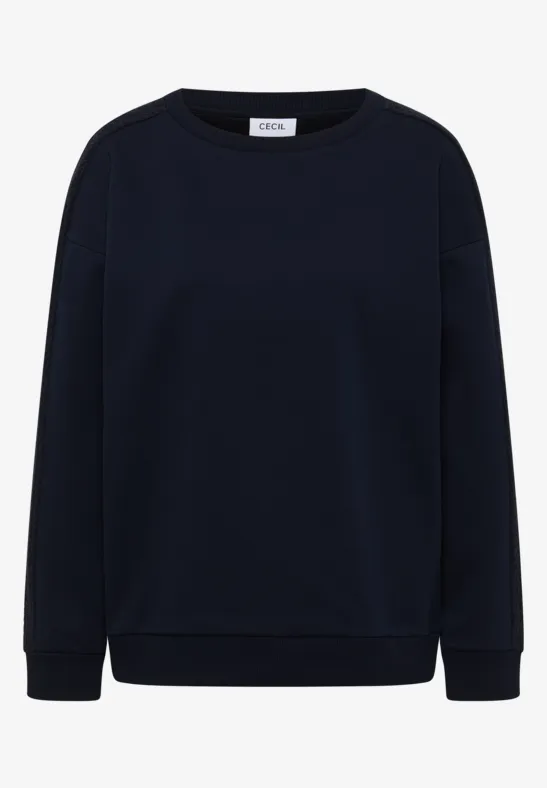 Dit CECIL sweatshirt voor dames met kabeldetails op de mouwen voegt een geraffineerde touch toe aan je alledaagse outfit. De zachte sweatstof, ronde hals en geribde boorden maken het comfortabel om overal bij te dragen. Een knusse look met mooie gebreide elementen.