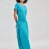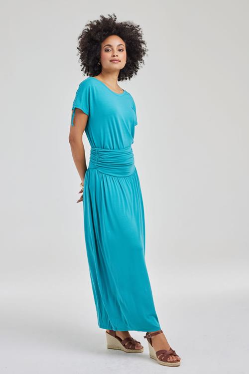 Tijdloze Stijl: T-shirt Lisa in Dark turquoise Het T-shirt Lisa in Dark turquoise is een veelzijdige toevoeging aan je kledingkast. Dit T-shirt heeft korte mouwen, is regular fit en recht van pasvorm, met een charmante ronde hals. Perfect voor zonnige dagen wanneer je op zoek bent naar iets fris en luchtigs. De dynamische blauwe kleur straalt niet alleen energie uit, maar is ook makkelijk te combineren met diverse outfits. Gemaakt van hoogwaardige stof Dit T-shirt is vervaardigd uit 95% Vorteks viscose en 5% elasthan. De viscose zorgt voor een zijdezachte en ademende stof, ideaal voor warme dagen wanneer je focust op comfort. De toevoeging van elasthan biedt net dat beetje extra stretch dat nodig is voor een optimale bewegingsvrijheid. Stijladvies Combineer het T-shirt Lisa met een mooie jeans voor een casual, maar stijlvolle look. De heldere kleur is ook ideaal om te dragen onder een lichte blazer of een leuk jasje. Voeg wat subtiele accessoires toe en je bent klaar voor een dag vol avonturen. Wasvoorschrift Het wasvoorschrift: Was het T-shirt binnenstebuiten op maximaal 30 graden met soortgelijke kleuren om langdurig van de kleur te genieten. Droogvoorschrift: Laat het liggend drogen om zijn vorm en pasvorm te behouden. Strijkvoorschrift: Strijk op lage temperatuur en bij voorkeur aan de binnenkant om de stof en kleur in topconditie te houden. Het T-shirt Lisa in Dark turquoise is onmisbaar voor elke garderobe. Geniet van de stijlvolle eenvoud en het hoogwaardig comfort, seizoen na seizoen.