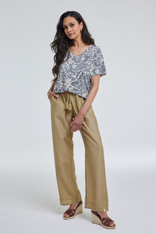 Stijlvol Comfort: T-shirt Pixel Offwhite Bereid je voor om elk moment van de dag fris en vol zelfvertrouwen te beleven met het T-shirt Pixel Offwhite. Dit korte mouw T-shirt, met zijn recht model en speelse print, is ontworpen om je een gevoel van vrijheid en stijl te bieden. De V-hals geeft je een elegante uitstraling, terwijl de lichte en luchtige stof ideaal is voor warmere dagen. Gemaakt van Hoogwaardige Stof Dit T-shirt is vervaardigd uit een hoogwaardige mix van 95% viscose en 5% elasthan. Visose biedt een heerlijk zacht en ademend gevoel, zodat je comfortabel blijft, zelfs op de zonnigste dagen. De toevoeging van elasthan zorgt voor net dat beetje extra stretch, zodat het kledingstuk altijd mooi in model blijft. Stijladvies Haal het meeste uit je look door het T-shirt Pixel Offwhite te combineren met een mooie jeans. De veelzijdige stijl en neutrale kleur maken het eenvoudig om dit T-shirt te matchen met verschillende tinten en texturen, zodat je altijd in stijl voor de dag komt. Wasvoorschrift Wassen: Om de kwaliteit van je T-shirt te behouden, was je het op 30 graden. Droogvoorschrift: Het is belangrijk om het T-shirt niet in de droger te doen. Laat het bij voorkeur aan de lucht drogen voor de beste resultaten. Strijkvoorschrift: Strijk het op een lage temperatuur om de stof glad en netjes te houden. Met deze eenvoudige onderhoudsinstructies blijft je T-shirt Pixel Offwhite net zo fris en stijlvol als de dag dat je het kocht. Geniet van langdurig plezier van dit veelzijdige kledingstuk!