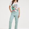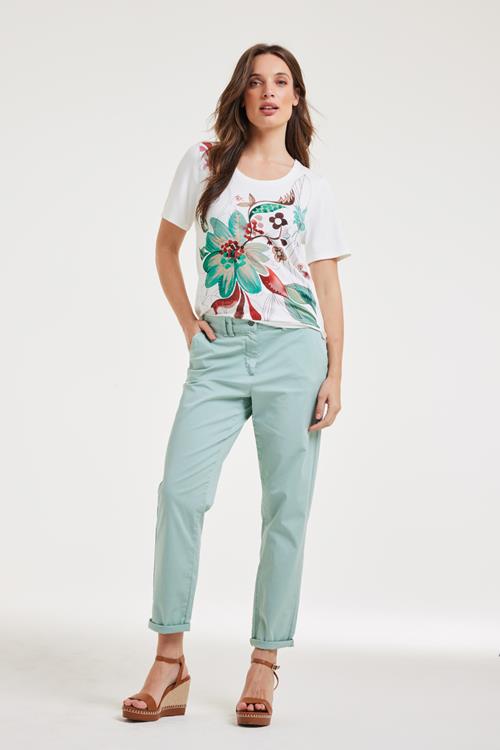 Unieke Stijl met T-shirt Reflection Offwhite Welkom in de frisse wereld van het T-shirt Reflection Offwhite. Dit luchtige T-shirt is de perfecte aanvulling op je voorjaars- en zomergarderobe. Met zijn korte mouwen en prachtige print straalt het een en al vrolijkheid uit. De losse pasvorm en de regular fit zorgen ervoor dat je je vrij en comfortabel voelt. De ronde hals biedt een klassieke touch die makkelijk te combineren is met bijna alles. Gemaakt van hoogwaardige stof Het T-shirt Reflection Offwhite is vervaardigd uit een hoogwaardige mix van 95% viscose en 5% elasthan. Deze combinatie biedt ultiem draagcomfort, ademend vermogen en flexibiliteit. Viscose zorgt voor een zacht gevoel op de huid en de toevoeging van elasthan geeft net dat beetje extra rek, zodat het T-shirt zijn vorm behoudt, hoe vaak je het ook draagt. Stijladvies Dit veelzijdige T-shirt Reflection Offwhite kun je eindeloos stylen. Combineer het bijvoorbeeld met een mooie jeans voor een casual dagje uit of draag het met een rok voor een iets elegantere look. De kleurrijke print maakt het makkelijk om te mixen en matchen met verschillende accessoires. Wasvoorschrift Wassen: Houd je T-shirt mooi door het op 30 graden te wassen. Vermijd gebruik van bleekmiddelen of chemisch reinigen, want dat kan de stof beschadigen. Droogvoorschrift: Dit kledingstuk houdt niet van de droger. Laat het liever op natuurlijke wijze drogen om lang van de kwaliteit te genieten. Strijkvoorschrift: Strijken hoeft niet moeilijk te zijn; gebruik gewoon een lage temperatuur om het T-shirt netjes en kreukvrij te houden. Dit T-shirt Reflection Offwhite is een praktische en stijlvolle keuze voor de warmere maanden. Met aandacht voor detail en kwaliteit geniet je seizoen na seizoen van dit veelzijdige kledingstuk.