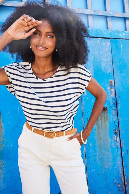 T-shirt Yuna Offwhite blue Stripe