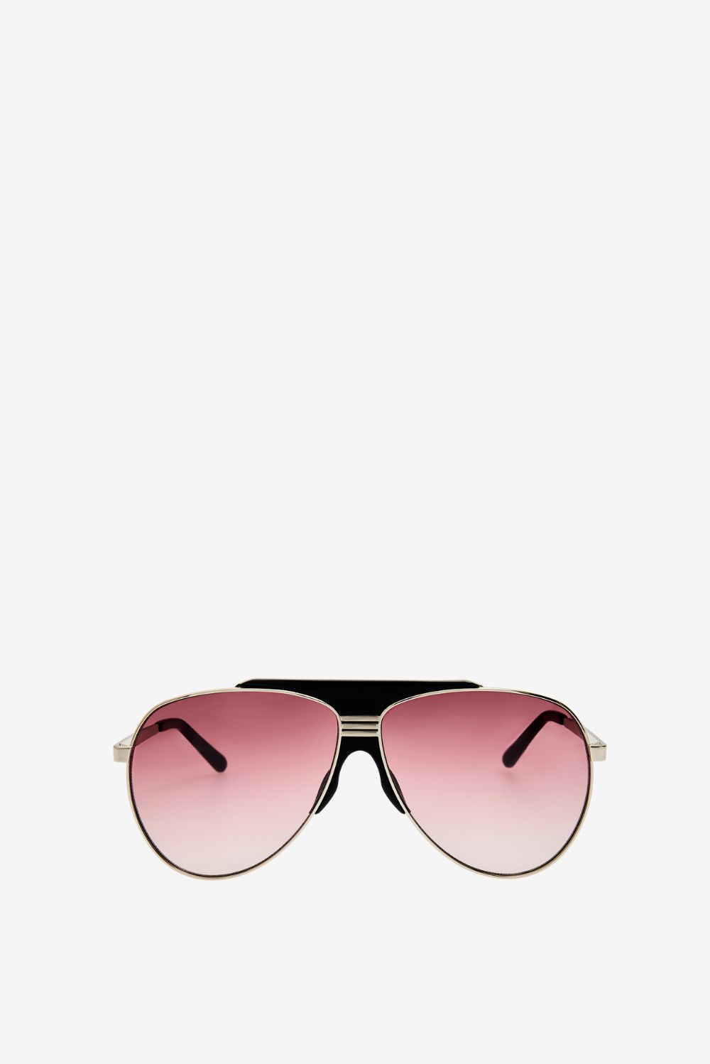De zonnebril Amelia white gold/silver van The Attico heeft de kenmerkende aviatorstijl met een frisse twist. De grote druppelvormige glazen vallen op door het roze kleurverloop dat mooi met het licht speelt. De dubbele brug boven de neus geeft het ontwerp een stoer en gestructureerd accent. Het dunne metallic montuur met contrasterende donkere bovenrand zorgt voor een luxe uitstraling zonder te overdrijven. Dit is een bril die elke look direct karakter geeft. Combineer met de The Attico zonnebril Jurgen ATTICO47C4SUN pink voor een opvallende summer-edit.