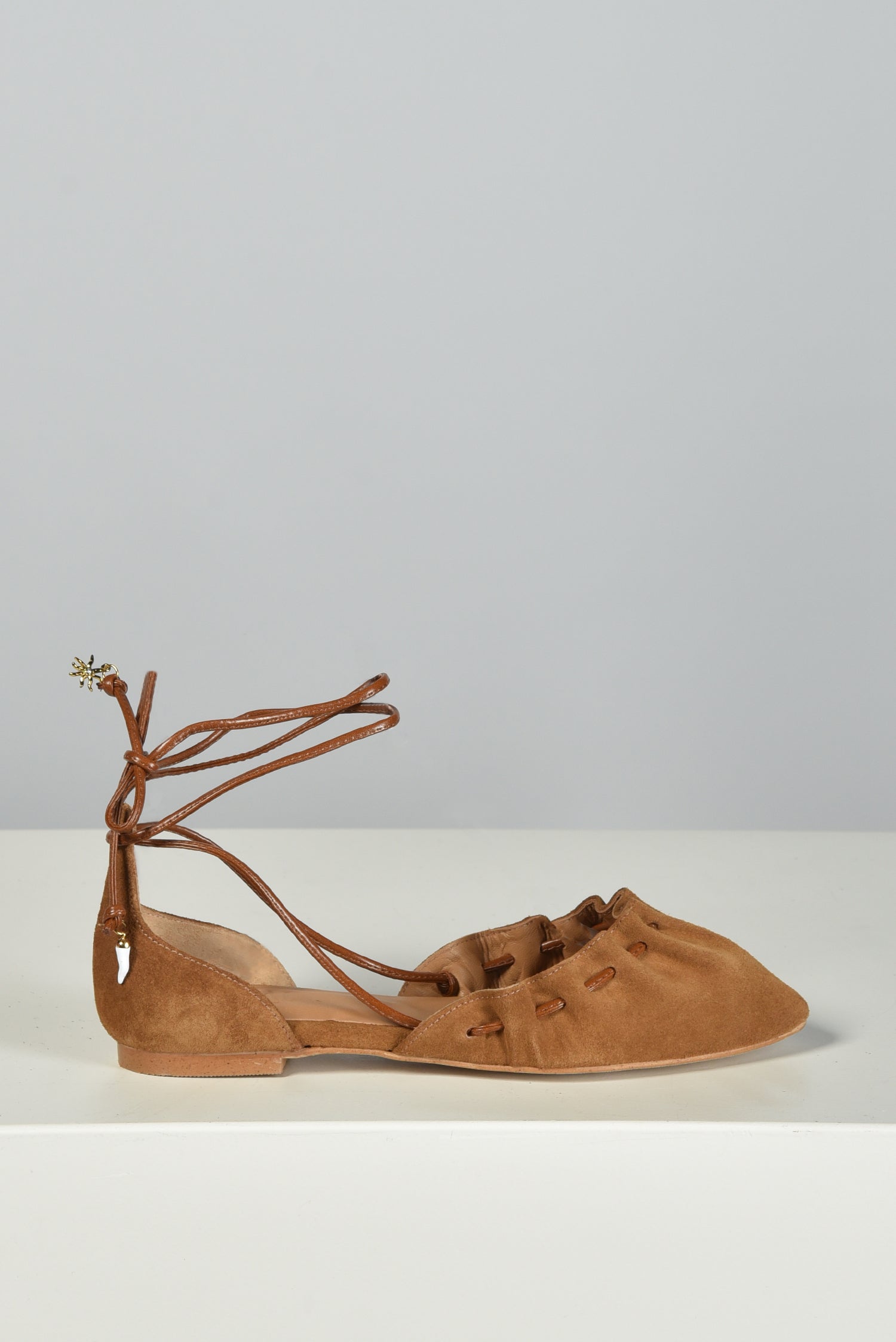 De ballerinas Raisa Cognac van Toral hebben dat bijzondere raffinement dat meteen opvalt. Het zachte suède in warme cognackleur benadrukt de vorm van de schoen en voelt soepel aan. De puntige neus geeft een elegante lijn, terwijl de wikkelbandjes met gevlochten detail rondom de enkel een subtiel accent vormen. Het lichte plooiwerk aan de voorkant zorgt voor extra karakter. Typisch Toral: aandacht voor elk stukje design, met een balans tussen modegevoel en draagbaarheid. Combineer de Raisa Cognac met de Toral ballerinas TL-RAISA champagne voor een stijlvolle variatie in je garderobe.
