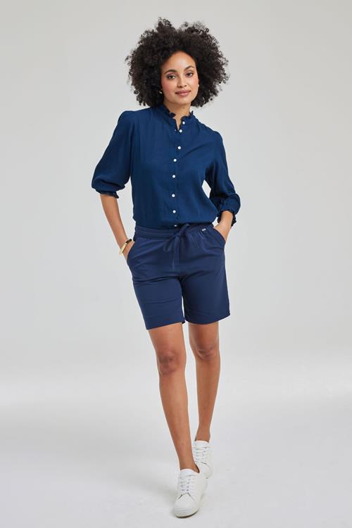 De veelzijdige Travel bermuda Sprint Dark blue Stel je voor dat je op een zonnige dag in de stad loopt, met een fris zomerbriesje dat je huid streelt. De Travel bermuda Sprint Dark blue is jouw perfecte metgezel voor zulke momenten. Deze korte broek in een die rijke blauwe kleur biedt een regular fit met een elastische tailleband en koordsluiting. De ideale combinatie van stijl en comfort waarmee je moeiteloos van de ene naar de andere activiteit kunt schakelen. Gemaakt van hoogwaardige stof Deze bermuda is vervaardigd uit 86% polyamide en 14% elasthan, materialen die garant staan voor duurzaamheid en comfort. De lichte, ademende stof voelt heerlijk zacht aan tegen de huid, terwijl de elasthan zorgt voor net dat beetje elasticiteit dat je bewegingsvrijheid vergroot. Hierdoor blijf je de hele dag comfortabel, zelfs op warme zomerdagen. Stijladvies Combineer de Travel bermuda Sprint Dark blue voor een stijlvolle en zorgeloze look met een leuke blouse. De rijke blauwe kleur van de korte broek laat zich prachtig combineren met verschillende tinten en patronen, zodat je steeds weer nieuwe outfits kunt creëren. Perfect voor zowel een dagje uit als een ontspannen avondje thuis. Wasvoorschrift Wassen: Houd je bermuda het langst mooi door deze op maximaal 30 graden te wassen. Zo behoud je de kleur en vorm van de stof. Drogen: Deze bermuda liever niet in de droger stoppen. Laat hem op een natuurlijke manier drogen voor het beste resultaat. Strijken: Mocht strijken nodig zijn, gebruik dan een lage temperatuur om beschadiging van de stof te voorkomen. En onthoud, bleken en chemisch reinigen zijn niet geschikt voor dit kledingstuk. Met de Travel bermuda Sprint Dark blue ben je klaar om elke zomerse dag stijlvol en comfortabel tegemoet te gaan. Voeg deze veelzijdige korte broek vandaag nog toe aan je garderobe! Ontdek Travel stof Dit product is gemaakt van travelstof. Deze stof heeft de volgende voordelen: ✔️ Voelt zacht en comfortabel ✔️ Kreukvrij ✔️ Stretch ✔️ Droogt snel