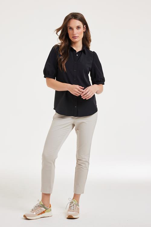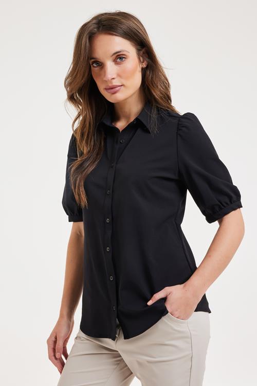 Travel blouse Destiny Black De Travel blouse Destiny Black is een stijlvol en veelzijdig kledingstuk dat perfect aansluit bij de dynamiek van de lente en zomer. De combinatie van zwart en grijs in een getailleerd ontwerp maakt deze blouse een verfijnde keuze voor diverse gelegenheden. Met korte mouwen en een klassieke kraag biedt deze blouse een moderne uitstraling, terwijl de knoopsluiting een praktische en elegante afwerking biedt. Stel je voor hoe je deze blouse draagt tijdens een zonnige dag, het perfecte item om moeiteloos stijlvol voor de dag te komen. Gemaakt van hoogwaardige stof De blouse is gemaakt van een blend van 86% polyamide en 14% elasthan, wat zorgt voor een comfortabele en duurzame pasvorm. Het materiaal voelt zacht aan op de huid en biedt een lichte elasticiteit, waardoor de blouse mooi aansluit zonder in te boeten op comfort. Dankzij deze stof is de blouse ademend en ideaal voor warmer weer, zonder dat je je zorgen hoeft te maken over kreuken of verlies van vorm. Stijladvies De Travel blouse Destiny Black is veelzijdig genoeg om naar het werk of een casual lunch te dragen. Combineer deze blouse met een lekker zittende broek of een stijlvolle jeans voor een complete look. De subtiele kleuren maken het gemakkelijk om te mixen en matchen met verschillende accessoires en schoenen. Wasvoorschrift Wasvoorschrift: Was de blouse binnenstebuiten op een lage temperatuur om de kwaliteit van de stof te behouden. Gebruik een fijnwasprogramma en een mild wasmiddel. Droogvoorschrift: Laat de blouse bij voorkeur aan de lucht drogen. Vermijd de droger om krimp en schade aan de elastische stof te voorkomen. Strijkvoorschrift: Strijken is meestal niet nodig. Mocht het toch gewenst zijn, stel het strijkijzer dan in op een lage temperatuur en strijk de blouse binnenstebuiten. Deze blouse biedt niet alleen stijl, maar ook gemak dankzij de eenvoudige onderhoudsinstructies. Voeg deze veelzijdige en elegante blouse toe aan je collectie voor een verfijnde look, ongeacht de gelegenheid. Ontdek Travel stof Dit product is gemaakt van travelstof. Deze stof heeft de volgende voordelen: ✔️ Voelt zacht en comfortabel ✔️ Kreukvrij ✔️ Stretch ✔️ Droogt snel