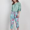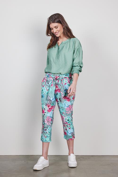 Travel capri Journal in de granite green with Floral Medley print Stel je voor dat je op een lichte, zonnige dag door de stad loopt of een ontspannen middag aan het strand doorbrengt. Met de Travel capri Journal in de granite green with Floral Medley print voel je je altijd op je gemak. Dankzij de regular waist en de elastische tailleband heb je optimale bewegingsvrijheid en comfort. De groene kleur met een levendige bloemenprint maakt deze capri de ideale keuze voor een frisse, vrolijke uitstraling. Gemaakt van hoogwaardige stof Deze capri is vervaardigd van een hoogwaardig materiaal dat bestaat uit 86% polyester en 14% elasthan. Het polyester zorgt voor duurzaamheid en lichte weerbaarheid, terwijl het elasthan een perfecte stretch biedt die elke natuurlijke beweging ondersteunt. Deze combinatie maakt de broek kreukvrij en gemakkelijk te onderhouden, ideaal voor dagelijks gebruik en de perfecte metgezel voor zonnige dagen. Stijladvies Combineer de Travel capri Journal met een prachtige bloemenprint moeiteloos met een leuke blouse voor een stijlvolle look. Voeg een paar stijlvolle sneakers of sandalen toe om het geheel compleet te maken. Dankzij het veelzijdige design kan deze capri zowel casual als chic gedragen worden. Wasvoorschrift Wasvoorschrift: Was de capri binnenstebuiten op maximaal 30 graden om de kleur en print te behouden. Droogvoorschrift: Hang de broek uit om te drogen, vermijd de droger om de stof en vorm te beschermen. Strijkvoorschrift: Strijken op lage temperatuur is voldoende om de stof glad te houden en de frisse look te bewaren. Met de Travel capri Journal in de granite green with Floral Medley print voeg je een veelzijdig en comfortabel kledingstuk toe aan je garderobe, perfect voor de zonnige dagen van het jaar. Ontdek Travel stof Dit product is gemaakt van travelstof. Deze stof heeft de volgende voordelen: ✔️ Voelt zacht en comfortabel ✔️ Kreukvrij ✔️ Stretch ✔️ Droogt snel