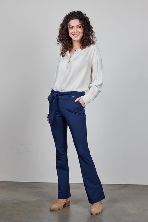 Comfort en Stijl met de Travel pants paseo in donkerblauw Ervaar het ultieme comfort en de veelzijdigheid van de Travel pants paseo in donkerblauw. Deze flared fit lange broek met ritssluiting biedt een stijlvolle uitstraling die je perfect kunt gebruiken voor elke gelegenheid. Het regular waist ontwerp maakt het een ideale keuze voor elke dag van het jaar. Gemaakt van hoogwaardige stof De Travel pants zijn gemaakt van een geavanceerde stof combinatie: 87% Polyamide en 13% Elasthan. Dit materiaal staat bekend om zijn duurzaamheid en flexibiliteit. Polyamide zorgt voor stevigheid, terwijl Elasthan zorgt voor een comfortabele stretch. Dit maakt de broek perfect voor langdurig gebruik zonder in te boeten aan stijl of pasvorm. Stijladvies Voor een moeiteloze en elegante look, combineer je deze Travel pants met een leuke blouse. Dit ensemble biedt een balans tussen casual en chic en kan eenvoudig worden afgestemd op verschillende accessoires om je persoonlijke stijl uit te drukken. Of je nu gaat voor een professionele vergadering of een ontspannen dag met vrienden, deze broek is jouw go-to-stuk. Wasvoorschrift Was instructie: Was de Travel pants op maximaal 30 graden om de kwaliteit te behouden. Het materiaal is bestand tegen lage temperaturen maar zorg ervoor dat je voorzichtig bent. Droogvoorschrift: Vermijd de droger om krimpen of schade aan de stof te voorkomen. Hang de broek uit om op natuurlijke wijze te drogen. Strijkvoorschrift: Strijk de broek op een lage temperatuur om de elegante structuur en uitstraling te behouden. Dit zorgt ervoor dat je broek er steeds op zijn best uitziet. Met zijn donkerblauwe kleur en hoogwaardig materiaal, is de Travel pants paseo je perfecte keuze voor elke dag. Ontdek Travel stof Dit product is gemaakt van travelstof. Deze stof heeft de volgende voordelen: ✔️ Voelt zacht en comfortabel ✔️ Kreukvrij ✔️ Stretch ✔️ Droogt snel