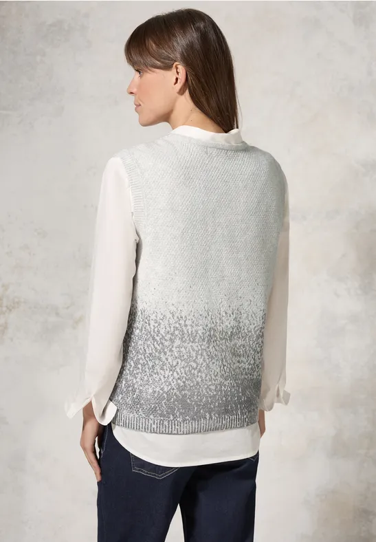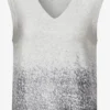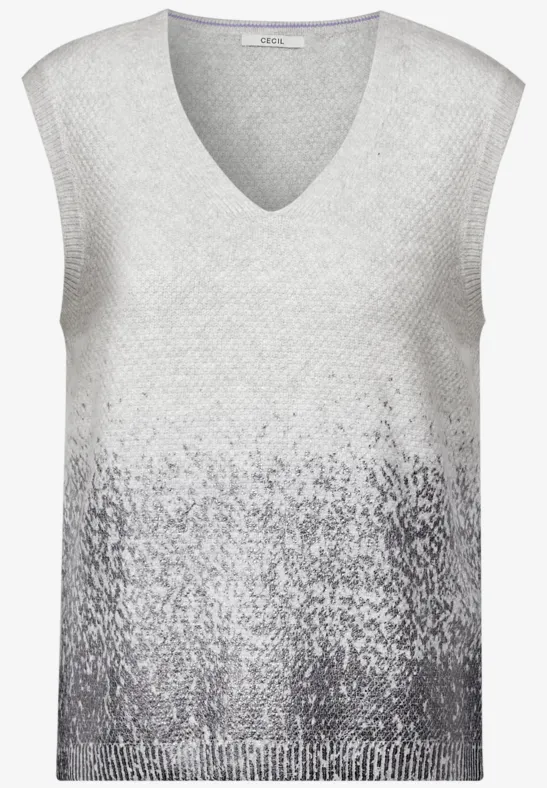 De trui met folieprint van CECIL voor dames is een stijlvol mouwloos kledingstuk. De V-hals en de glinsterende details maken hem tot een bijzondere highlight. De katoenmix met stretch zorgt voor een comfortabele pasvorm.