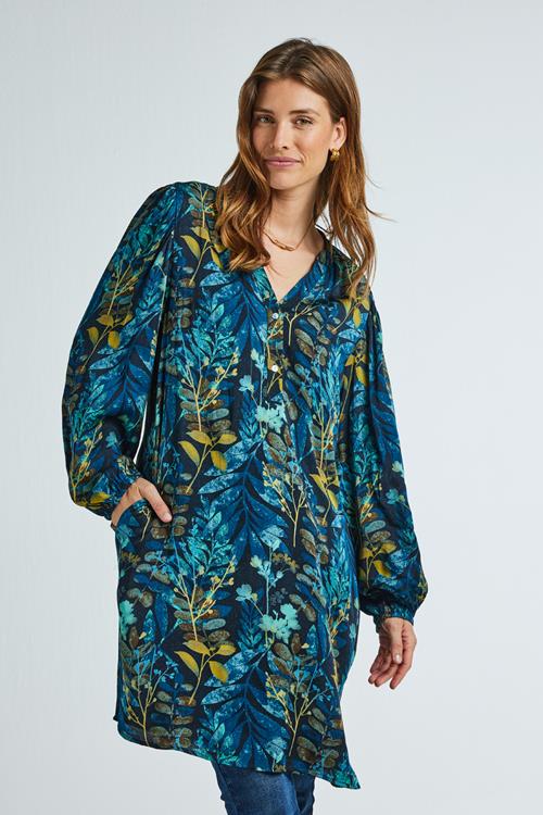 Stijlvol en Comfortabel: Tunic Celeste Blue Maple print Ontdek de veelzijdigheid en elegantie van de Tunic Celeste Blue Maple print. Deze tuniek combineert een prachtige blauwe kleur met een subtiele en verfijnde print. Het model is perfect voor als je op zoek bent naar een stijlvolle en comfortabele look. Met de lange mouwen en knoopsluiting krijg je een relaxed en casual gevoel, ideaal voor gezellige, koele dagen. De loose fit en V-hals maken het een kledingstuk dat moeiteloos stijl en comfort samenbrengt. Gemaakt van hoogwaardige stof De Tunic Celeste Blue Maple print is vervaardigd uit 70% viscose en 30% Ecovera. Deze hoogwaardige mix zorgt voor een zachte en ademende textuur die heerlijk aanvoelt op je huid. Viscose staat bekend om zijn zijdeachtige glans en uitstekende drapeerkwaliteiten, terwijl Ecovera een duurzame keuze is, gemaakt van hernieuwbare grondstoffen. Samen bieden ze een milieuvriendelijke optie zonder in te boeten op stijl of kwaliteit. Stijladvies Deze tuniek is veelzijdig en kan op verschillende manieren gestyled worden. Combineer hem met een strakke jeans voor een moderne, casual look. Voeg een paar laarzen toe en je bent klaar voor een dagje uit. Voor een chiquere uitstraling, draag de tuniek met een effen legging en elegante accessoires. De rijke blauwe tint en de unieke print maken elke outfit bijzonder. Wasvoorschrift Wassen: Om de kwaliteit van je tuniek te behouden, was je deze het best op 30 graden. Gebruik geen bleekmiddel. Droogvoorschrift: We raden aan om de tuniek niet in de droger te doen. Laat deze in plaats daarvan op een natuurlijke manier drogen. Strijkvoorschrift: Strijk je tuniek op lage temperatuur om de stof te beschermen en de print te behouden. Met de Tunic Celeste Blue Maple print haal je een stijlvol, comfortabel en duurzaam kledingstuk in huis, perfect geschikt voor elke gelegenheid.