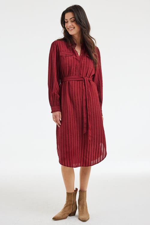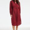 Tunic Dusk Pomme Red: Elegant en Tijdloos De Tunic Dusk Pomme Red is jouw nieuwe favoriete aanvulling voor de koudere maanden. Deze elegante tuniek in een warme, rode tint is ontworpen met de perfecte combinatie van stijl en comfort. De lange mouwen en rechte pasvorm maken het een veelzijdig kledingstuk, ideaal voor zowel casual als formele gelegenheden. De klassieke kraag en knoopsluiting geven het een verfijnde uitstraling, terwijl de ceintuur en riemlussen zorgen voor een speels accent. Gemaakt van hoogwaardige stof Deze tuniek is vervaardigd uit een zorgvuldig geselecteerde stofmix: 83% viscose, 15% nylon en 2% elasthaan. Deze samenstelling biedt ultiem comfort en flexibiliteit. Viscose staat bekend om zijn zijdeachtige gevoel en ademende eigenschappen, waardoor je je de hele dag fris voelt. Nylon voegt stevigheid en duurzaamheid toe, terwijl elasthaan zorgt voor subtiele stretch voor een perfecte pasvorm. Stijladvies Combineer de Tunic Dusk Pomme Red met stijlvolle enkellaarsjes en een chique riem voor een elegante herfstlook. In de winter draag je het met een dikke panty en boots voor extra warmte. Dit veelzijdige stuk laat zich moeiteloos combineren met verschillende accessoires voor elke gelegenheid. Wasvoorschrift Wasinstructie: Was de tuniek op 30 graden om de kwaliteit van de stof te behouden. Droogvoorschrift: Niet in de droger gebruiken. Laat de tuniek liggend drogen om zijn vorm en pasvorm te behouden. Strijkvoorschrift: Strijk op een lage temperatuur om de delicate stof niet te beschadigen. Geniet van de comfort en stijl die de Tunic Dusk Pomme Red te bieden heeft en laat je stralen in elke setting deze winter.
