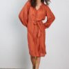 Tunic Sage Bruschetta: De Perfecte Begeleider voor Lichte Dagen De Tunic Sage Bruschetta is jouw ultieme partner voor de warme seizoenen. Het luchtige design met zijn vloeiende beige en bruine tinten straalt een natuurlijke elegantie uit. Deze tuniek heeft een rechte pasvorm en lange mouwen, wat zorgt voor een stijlvolle en comfortabele uitstraling. De ronde hals en de knoopsluiting geven een verfijnde touch die dit kledingstuk geschikt maakt voor verschillende gelegenheden. Gemaakt van hoogwaardige stof Gemaakt van 100% viscose, biedt de Tunic Sage Bruschetta een ongekend comfort én stijl. Viscose is bekend om zijn zijdeachtige gevoel en luchtigheid, perfect voor de warmere maanden. Dit materiaal ademt goed, zodat je je altijd fris voelt, zelfs op de warmste dagen. Daarbij zorgt viscose ervoor dat de kleuren mooi en levendig blijven, wasbeurt na wasbeurt. Stijladvies Combineer de Tunic Sage Bruschetta met een paar lichte sandalen en subtiele sieraden voor een frisse zomerse look. De tuniek leent zich uitstekend voor zowel casual uitjes als formele gelegenheden. Voeg een stijlvolle riem toe om je taille te accentueren, of draag hem losjes voor een meer ontspannen uitstraling. Dit veelzijdige stuk past perfect bij al jouw favoriete accessoires. Wasvoorschrift Wasvoorschrift: Om de schoonheid van de Tunic Sage Bruschetta te behouden, kun je het beste kiezen voor een handwas of voorzichtig wassen in de machine op een laag toerental. Droogvoorschrift: Hang de tuniek uit om te drogen, zodat de stof soepel blijft en niet krimpt. Strijkvoorschrift: Strijk de tuniek op een lage temperatuur om de vorm en het materiaal te behouden. Met de Tunic Sage Bruschetta voeg je een veelzijdig en stijlvol stuk toe aan je collectie, perfect voor zonnige dagen en warme avonden.