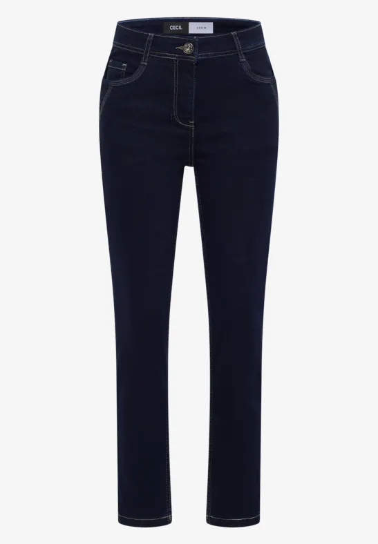 In de Scarlett-stijl is deze casual fit jeans van CECIL voor dames met een Mid Waist en Slim Legs bijzonder geschikt om elke dag te dragen. De gespoelde look heeft een cleane uitstraling en kan op verschillende manieren worden gecombineerd. Deze casual fit jeans zijn ideaal voor een ontspannen alledaagse look en maken indruk met hun comfortabele pasvorm.