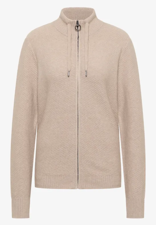 Dit vest van CECIL voor dames heeft een opstaande kraag met aantrekkoord en een fijn structuurpatroon. Lange mouwen en een ritssluiting over de hele lengte voegen herfstaccenten toe, terwijl de zachte stof zorgt voor een hoog draagcomfort. Ideaal voor knusse looks op frisse dagen.