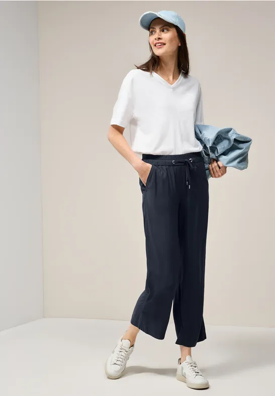 Deze Straight Legs broek van CECIL voor dames in de stijl Neele is gemaakt van zachte viscose en valt op door zijn lichte en luchtige uitstraling. De High Waist en Loose Fit en de elastische tailleband met trekkoord zorgen voor een bijzonder comfortabele pasvorm, terwijl de steekzakken casual accenten toevoegen. Of je hem nu draagt voor alledaags gebruik of op een strandvakantie, deze broek is veelzijdig en zal je lichtgewicht en ongecompliceerde zomerhoogtepunt worden.