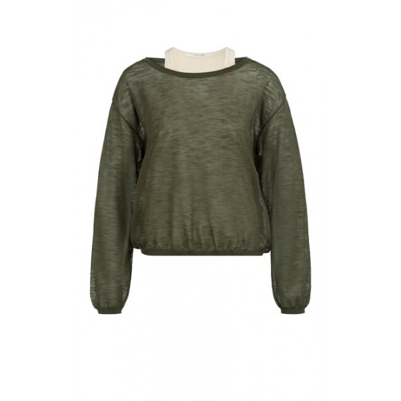 Top van YAYA in een stijlvolle olijfgroene tint, uitgevoerd in een luchtige, semi-transparante kwaliteit met een moderne layered look. De losvallende pasvorm en elastische zoom zorgen voor een nonchalante, sportieve uitstraling, terwijl de bijpassende top eronder extra comfort en draaggemak biedt. Een eigentijds item met een verfijnde twist.