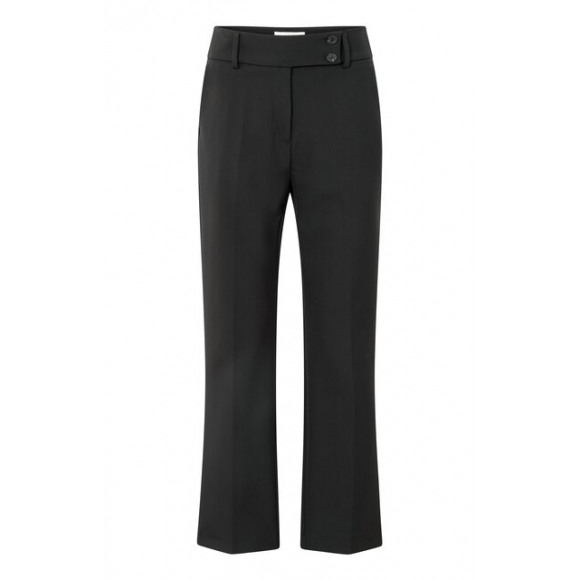 Broek van YAYA. Deze zwarte pantalon is een echte garderobeklassieker met een moderne twist. De subtiele wijde pijp en de hoge taille met dubbele knoopsluiting geven de broek een elegante, maar stoere uitstraling. Gemaakt van een soepele stof die mooi valt en zorgt voor ultiem draagcomfort.